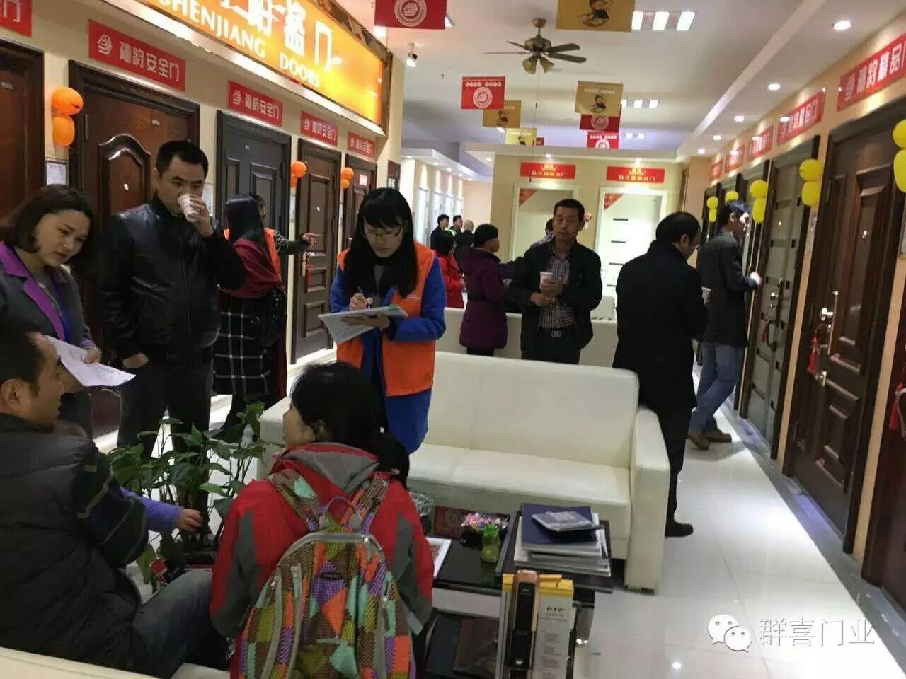 此次活动公司将旗下产品更加全面、详细的展示在所有的消费者面前。实惠的价格、优良的品质、热情的服务态度、专业的团队等都是吸引所有消费人群的重要因素。这般抢购热潮见证了消费者对群喜产品的追捧与喜爱。活动现场,群喜门业的店面挤满了人群。工作人员热情地为广大消费者介绍产品,分析其独特的魅力所在。活动三天:在全体销售团队全力协助下,仅仅定金就收了48.73万。