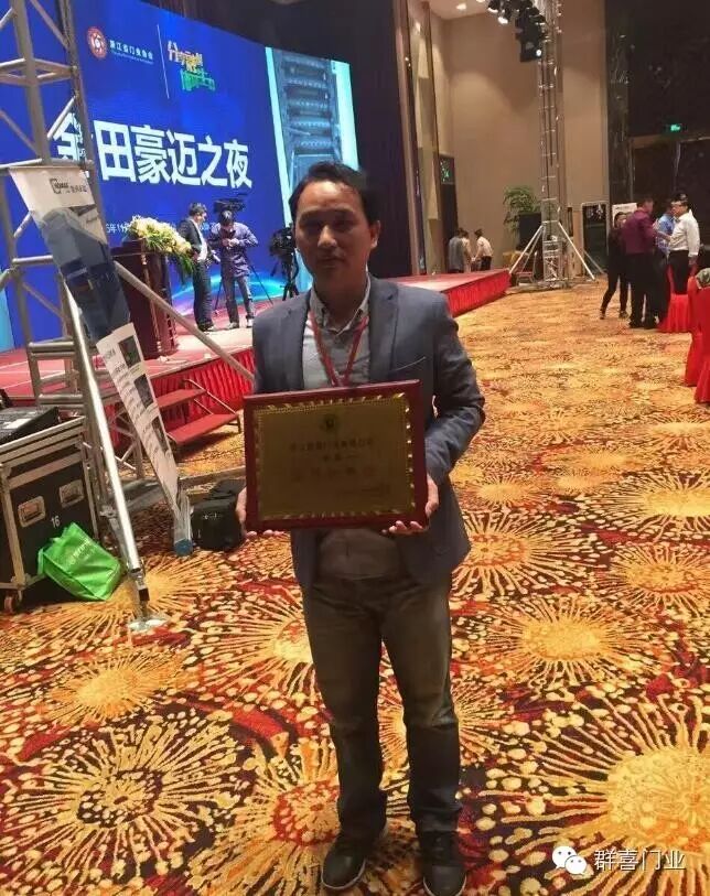 (群喜门业代表:销售经理涂聪贵上台领奖)