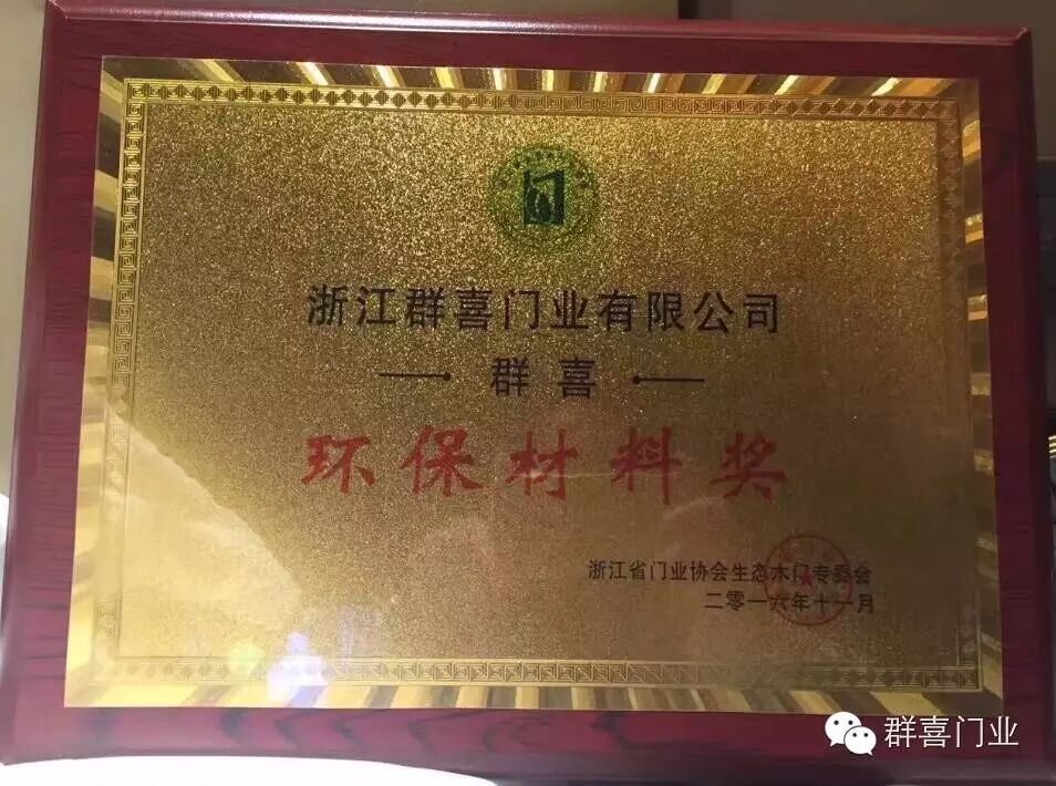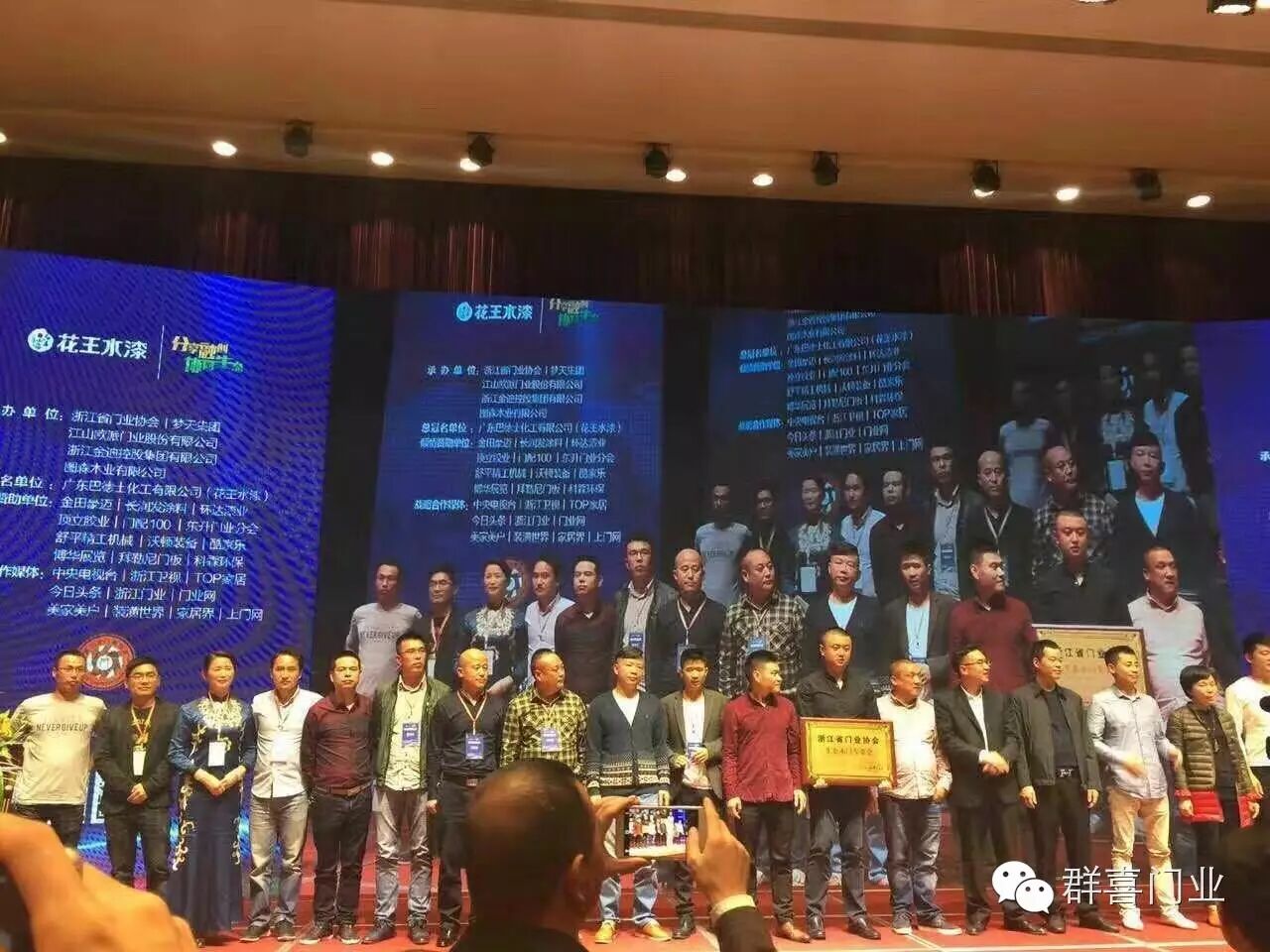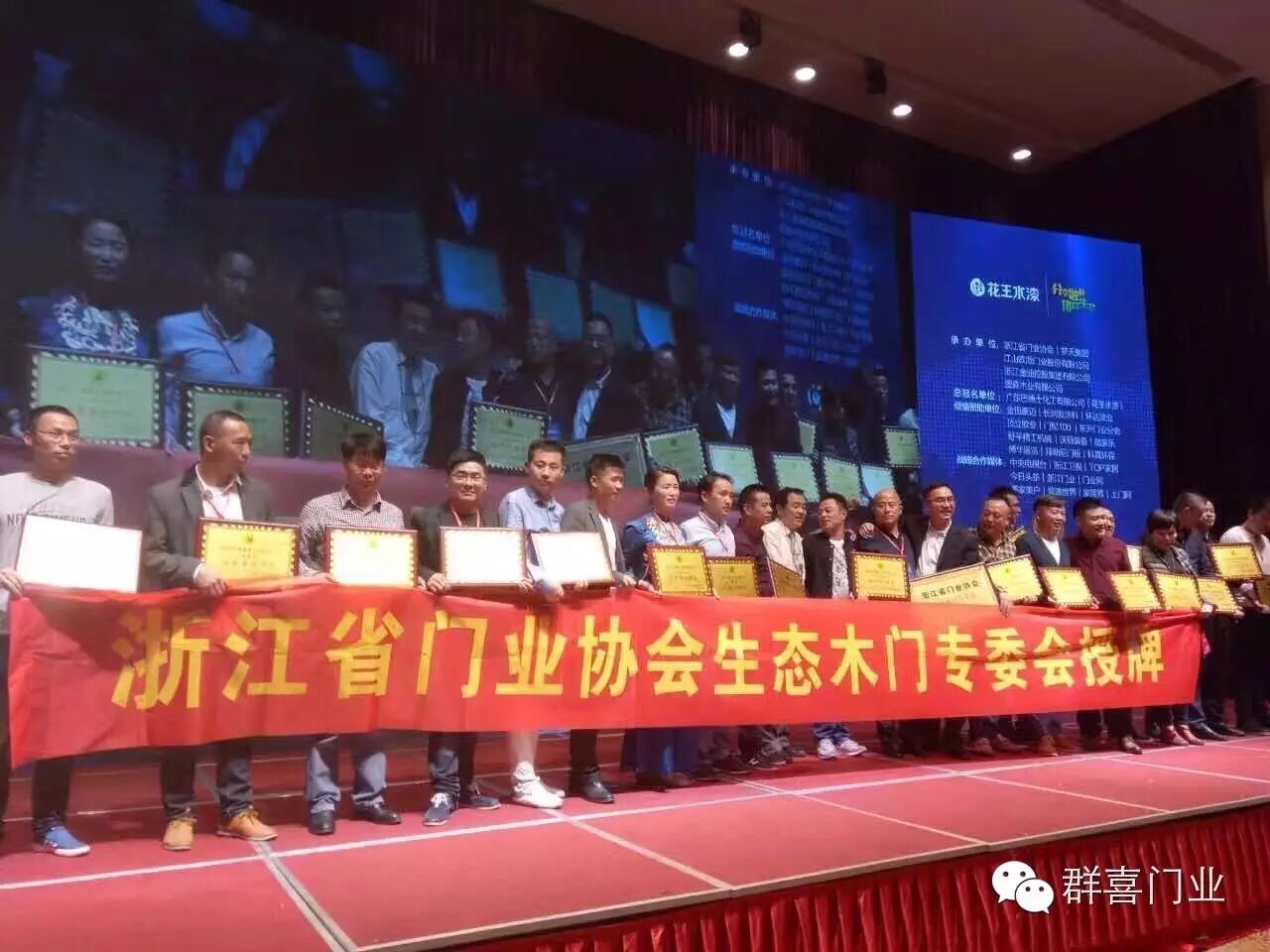 2016年11月7日中国门业及整木定制发展论坛暨浙江省门业协会年会在江山金陵大酒店隆重举行。门业思想碰撞,技术大展示!会议精彩纷呈,大牌云集!群喜门业作为国内知名木门制造企业受邀参加,并荣获“环保材料奖”!